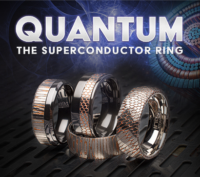 These rings are not just crafted, they are harnessed from the very essence of energy itself! Each one of our Quantum rings is carved out of the core of a Niobium-Titanium Cable core encased in copper. These SuperCondurctors cables are capable of carrying high voltages of electricity with zero resistance once cooled to extremely low temperatures driven by the principles of Quantum mechanics, making them conduits to limitless power and style.