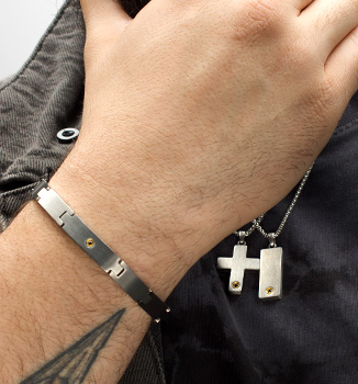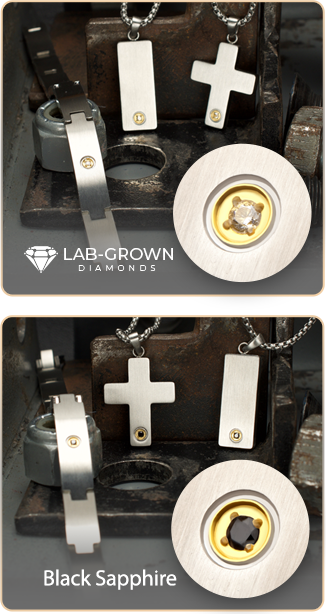 Crafted in the fiery tradition of Vulcan, the Greek god of metalwork and fire, the Vulcan collection by INOX Men's Jewelry redefines the standards of stainless steel design. Merging rugged industrial aesthetics with modern sophistication, the collection emphasizes the meticulously engineered compact size of its pendants. Despite their sleek dimensions, each piece maintains a substantial thickness that lends satisfying weight and presence. The precision-set 1.6mm gemstones—VS1 diamonds or black sapphires—each framed elegantly in 18k gold IP, elevate the clean lines and neutral tones, adding a luxurious touch to every item.