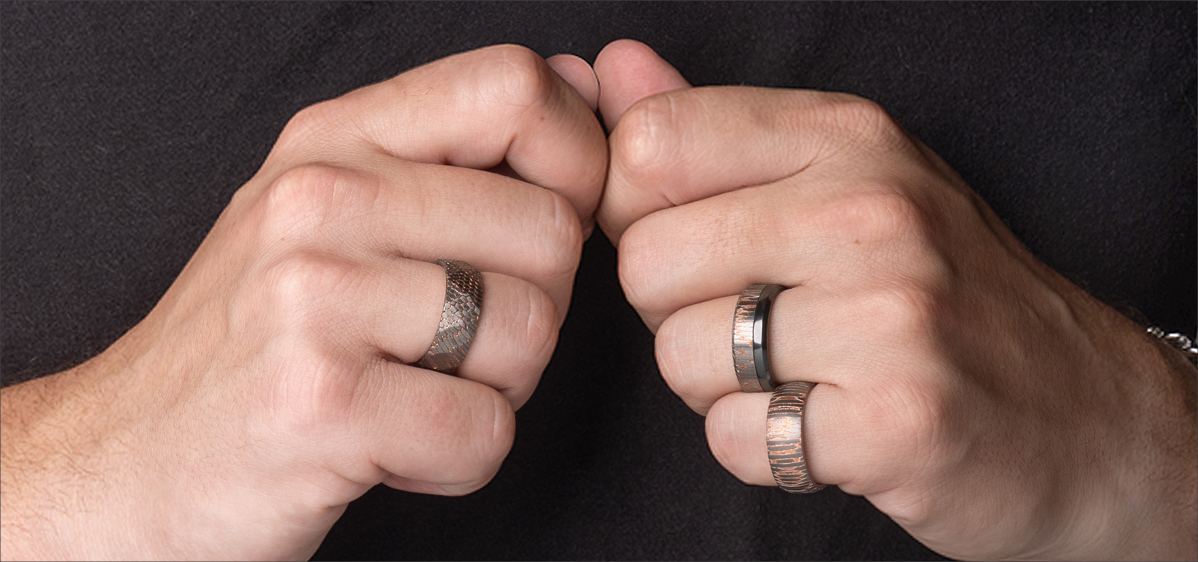 Each one of our Quantum rings is one of a kind. The unique patterns on the surface of the rings are the result of the angle at which the SuperConductor Core cable is carved, with the layout of each cable having slight variations no two pieces are alike. These unique patterns are complemented by the warmth of the Copper Ore encasing the core and the final touch is the stylish use of Titanium and Black Zirconium in the ring shank itself, featuring comfort-fit bands.