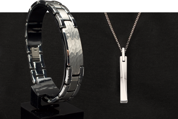 - Sleek Pendants: Cut from the same unyielding material, our pendants offer a sleek complement to any ensemble, perfect for those who prefer their style straightforward yet impactful.